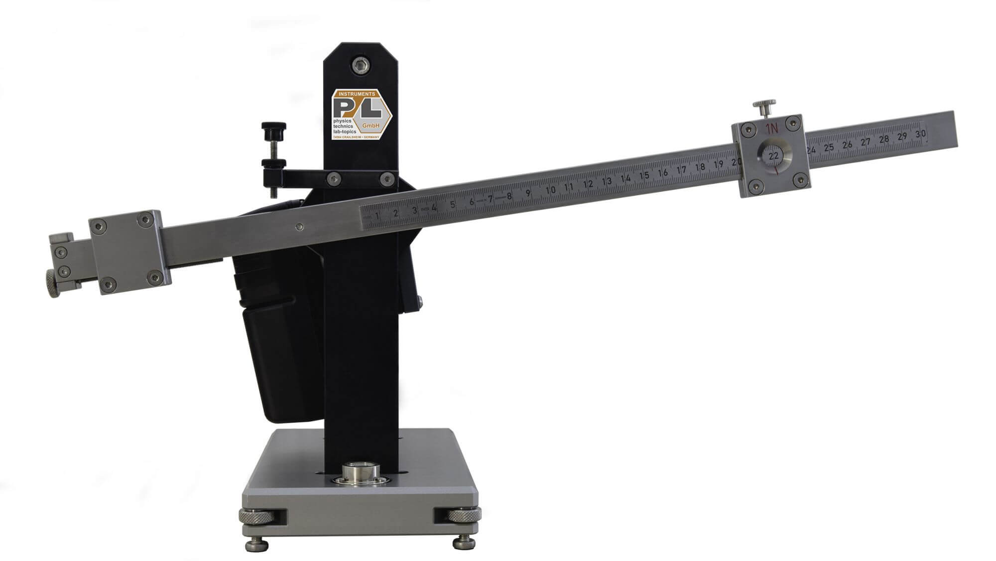 滑动重量片的位置可以从厘米刻度上读出。如果将1 N的重量置于25 cm = 0.25 m处,扭矩为1 N x 0.25 m = 0.25 Nm。