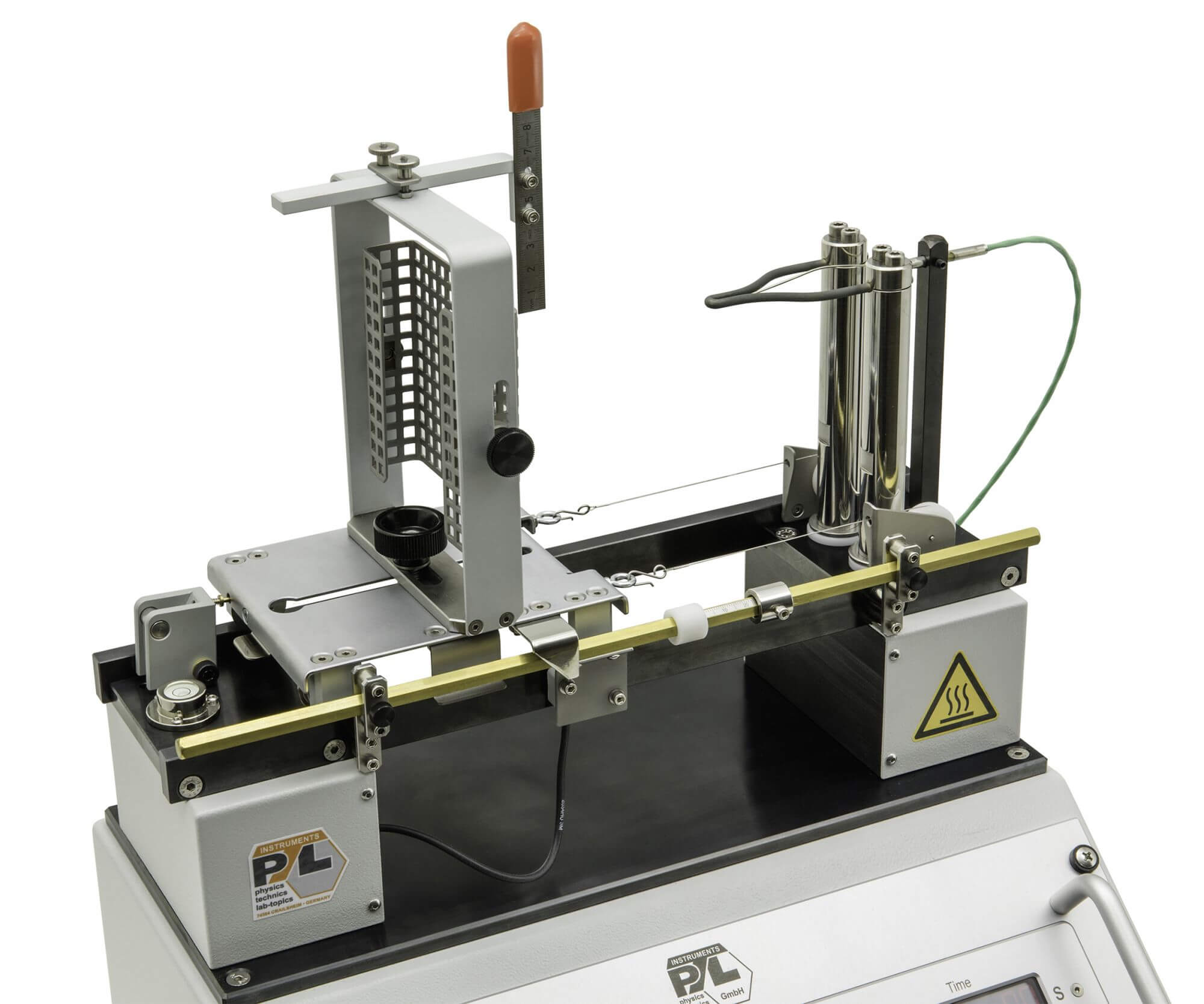 电热丝环模拟一个强烈加热的火源。使用夹套热电偶测量可调温度。在测试中,样品通过轨道系统被移动到电热丝上。样品在灯丝上的停留时间可以通过定时器可变设置。